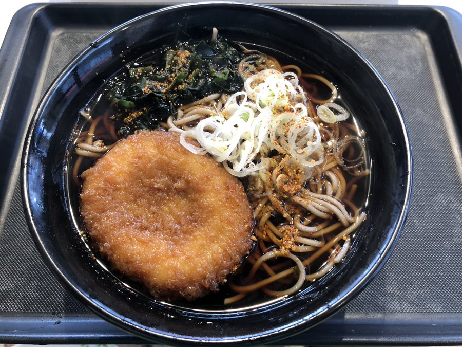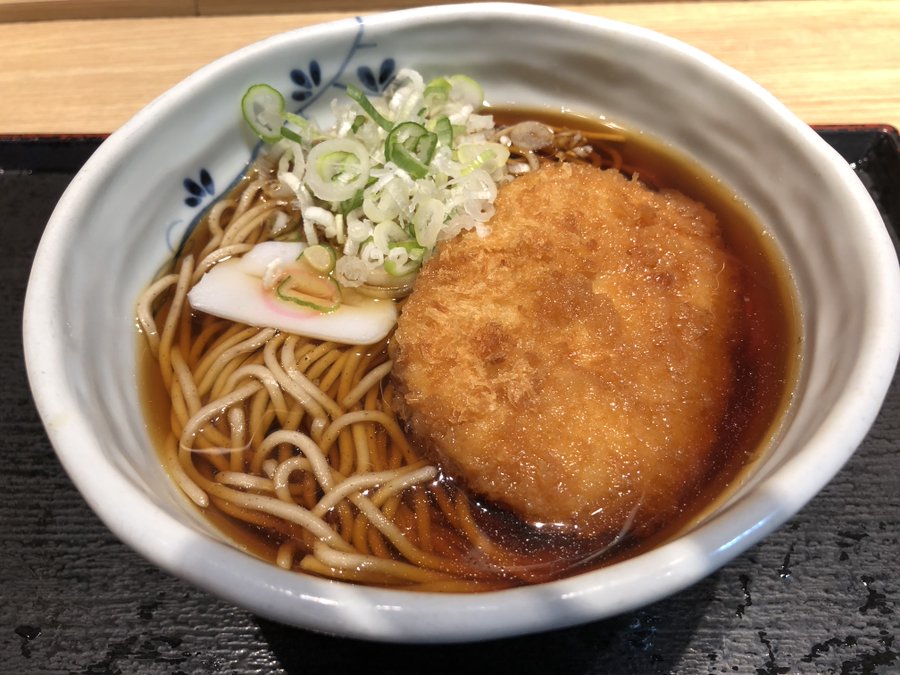 しばらく関西方面にツアーに行くので、関東の出汁と相性の良いコロッケ載せを。立ち食い蕎麦屋にはあって一般蕎麦屋には無いメニュー、嗚呼その名はコロッケそば也。