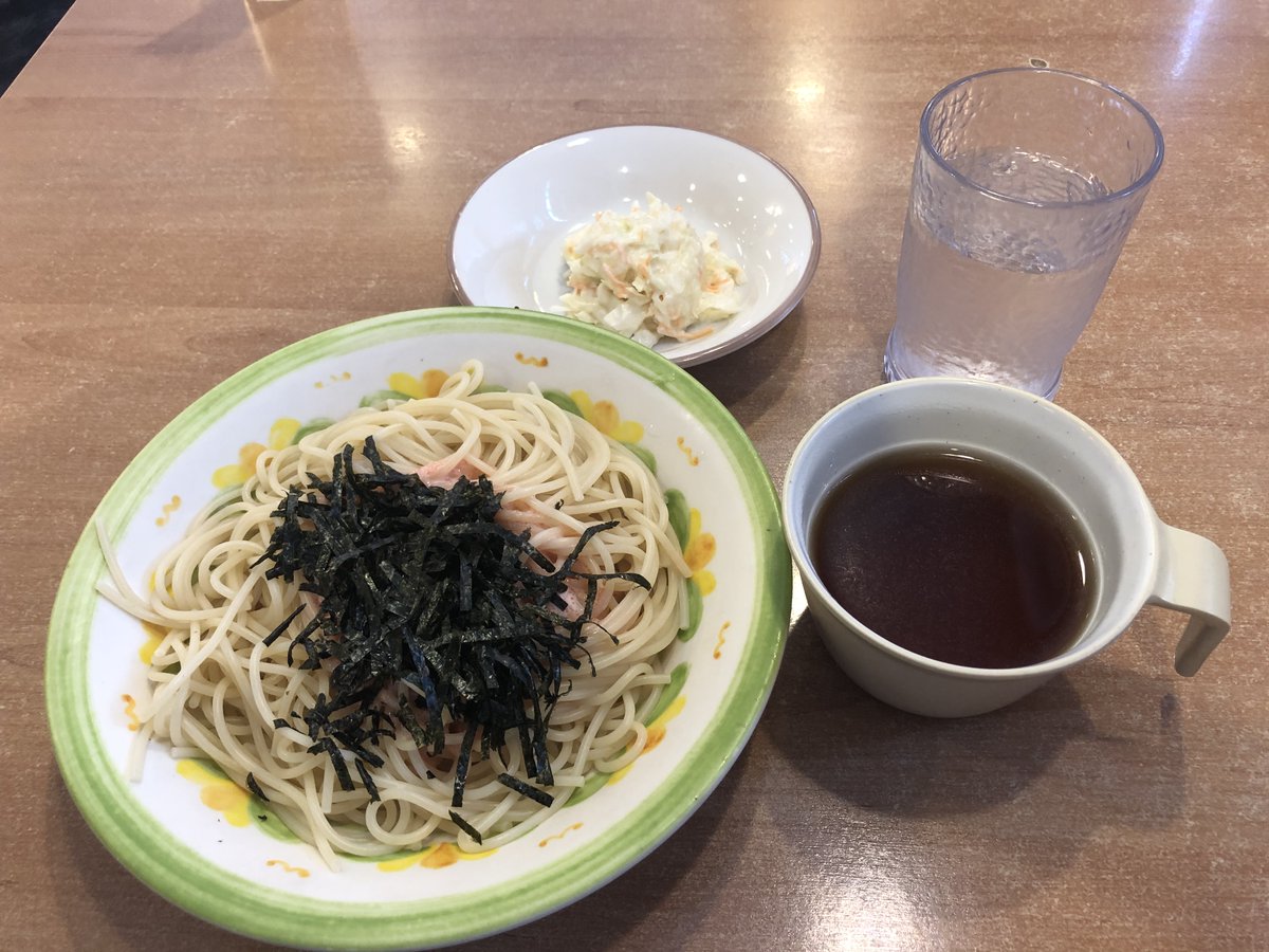 これで税込500円。たらこスパゲッティ、サラダ、スープ。立ち食い蕎麦より安いな、サイゼリヤ。
