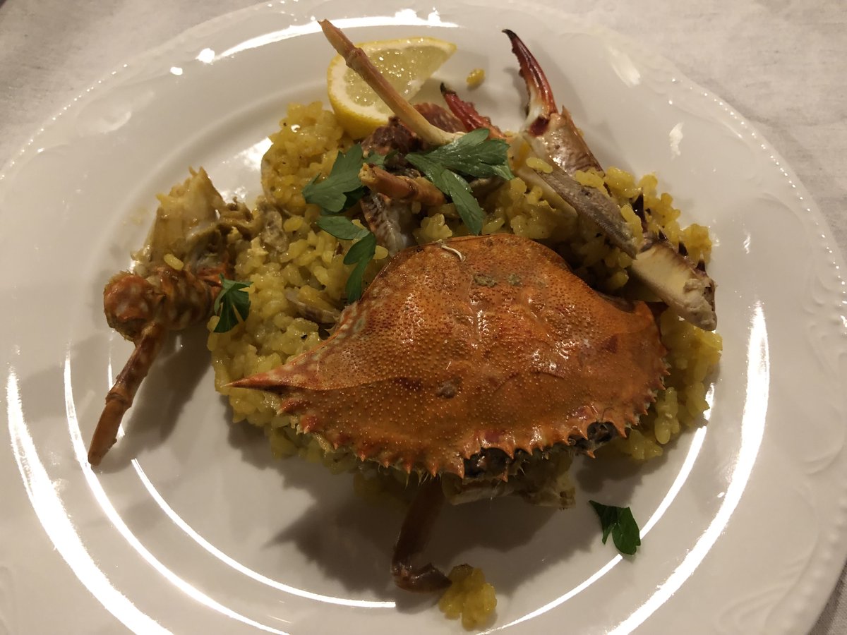 打ち上げはカニのパエリア。前菜やデザートも出て豪華!