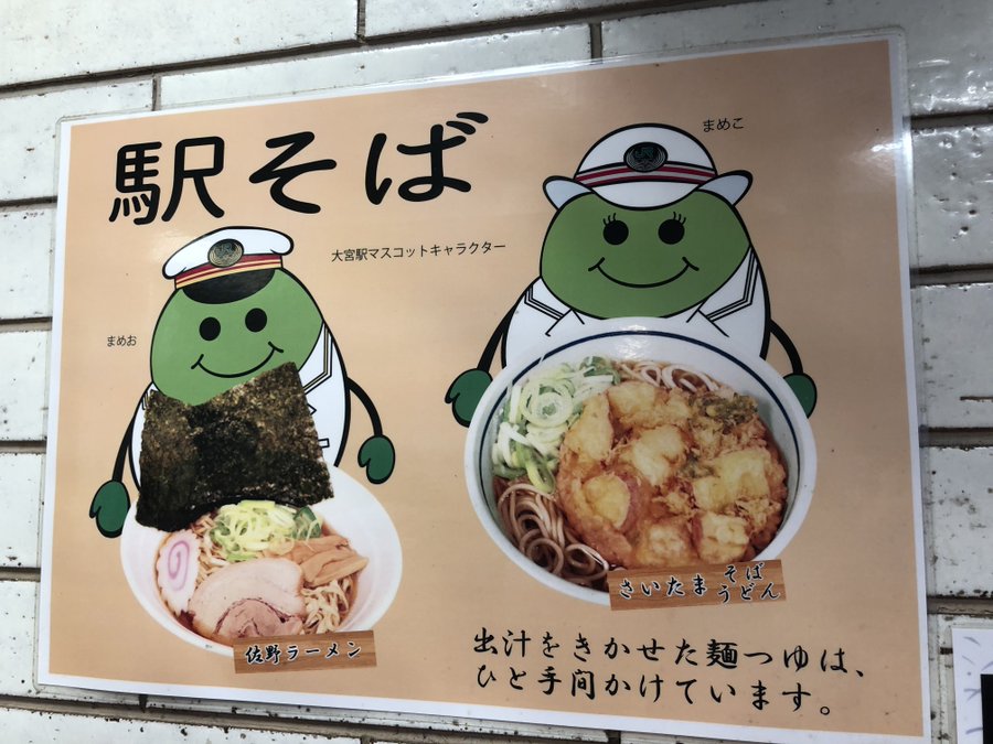 「さつまいもの形の埼玉県」からか、さつまいものかき揚げのさいたまそば。店名がそのまま「駅そば」というのもストレートでいいね。ボーッとしててちょっと食べちゃってから慌てて写真撮ったので中途半端ゴメン。