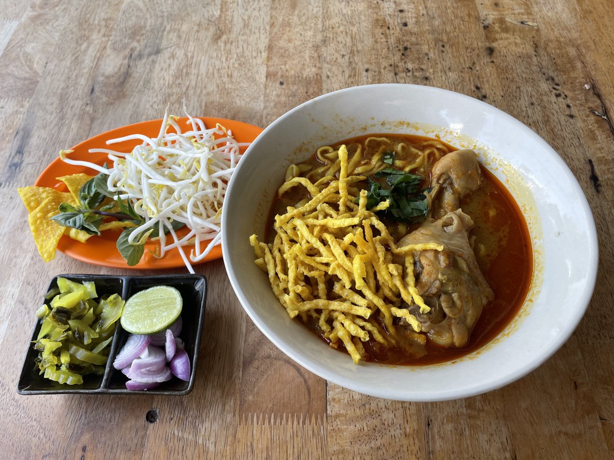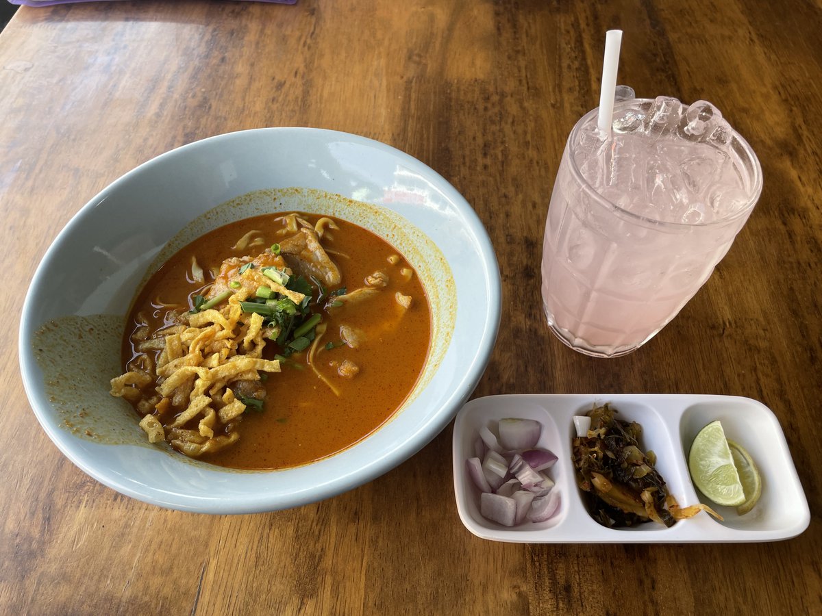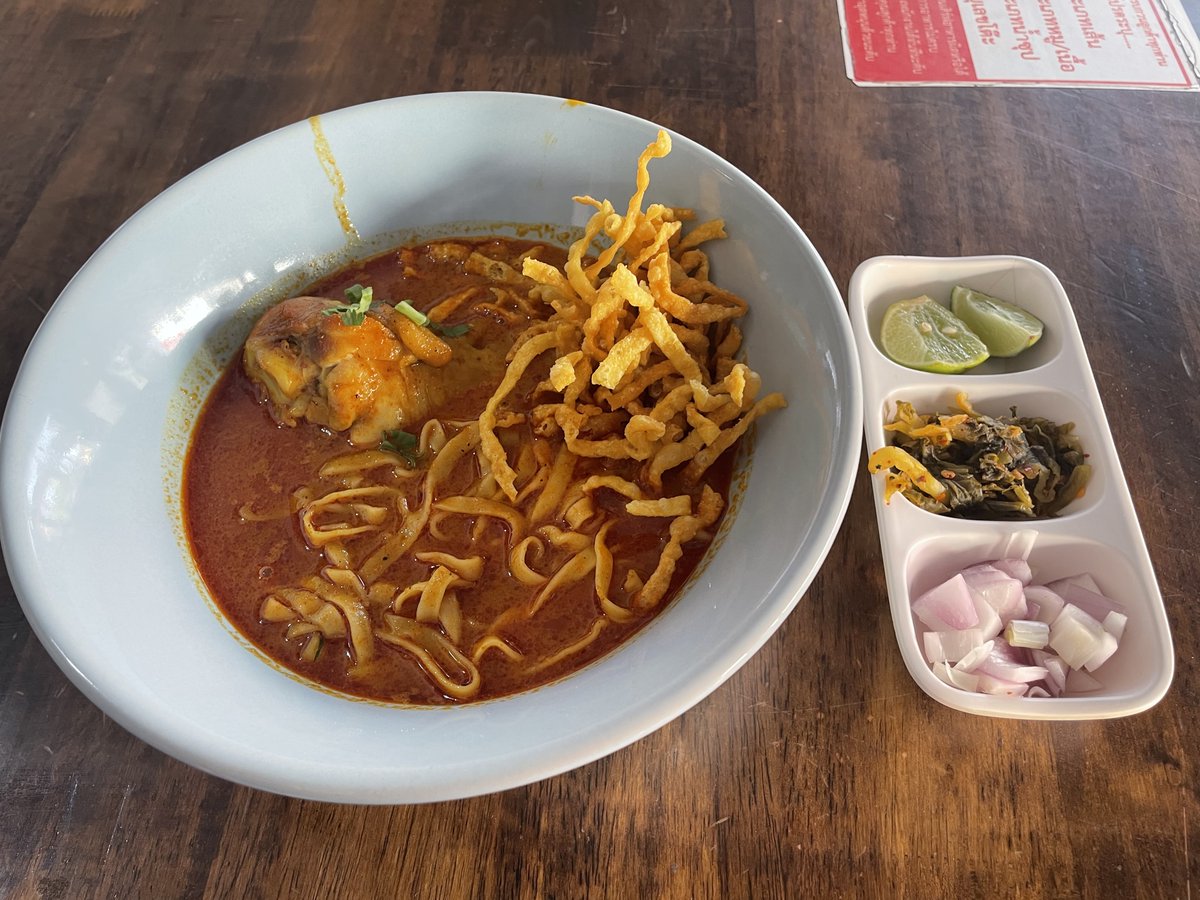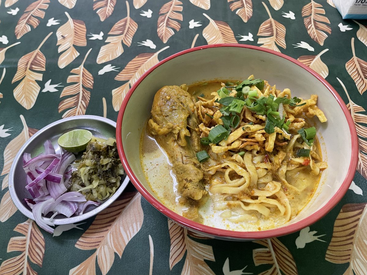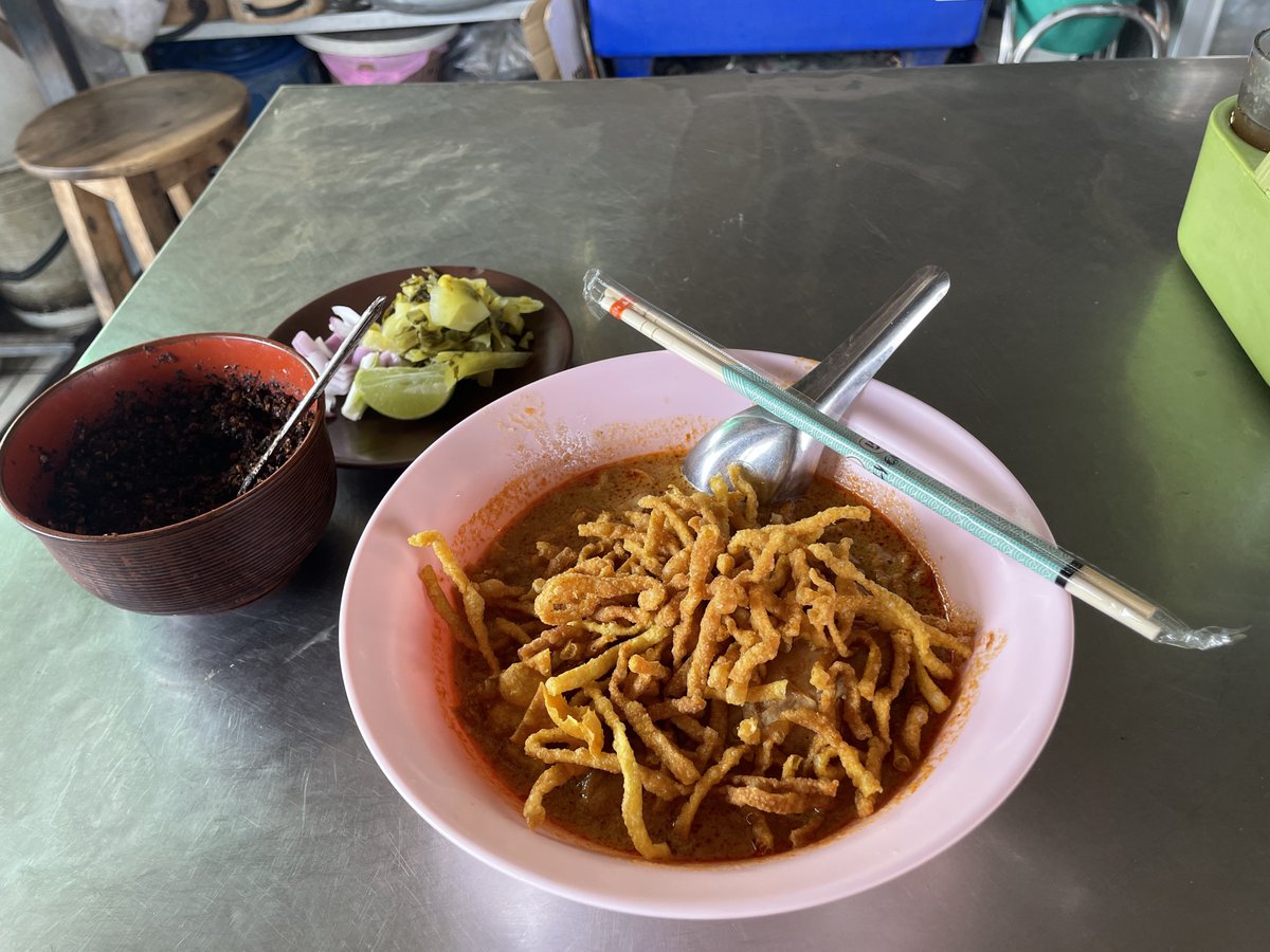 よもや昨日の夜もカオソーイ。友達と分けて食べたから全部じゃないけど一日ダブルカオソーイは初めてかも。日本でカオソーイ専門店できないかな、ワンコインぐらいで。円安でもはや日本と物価が変わらないと言われるチェンマイでも250円くらいなので。旨いのに~。