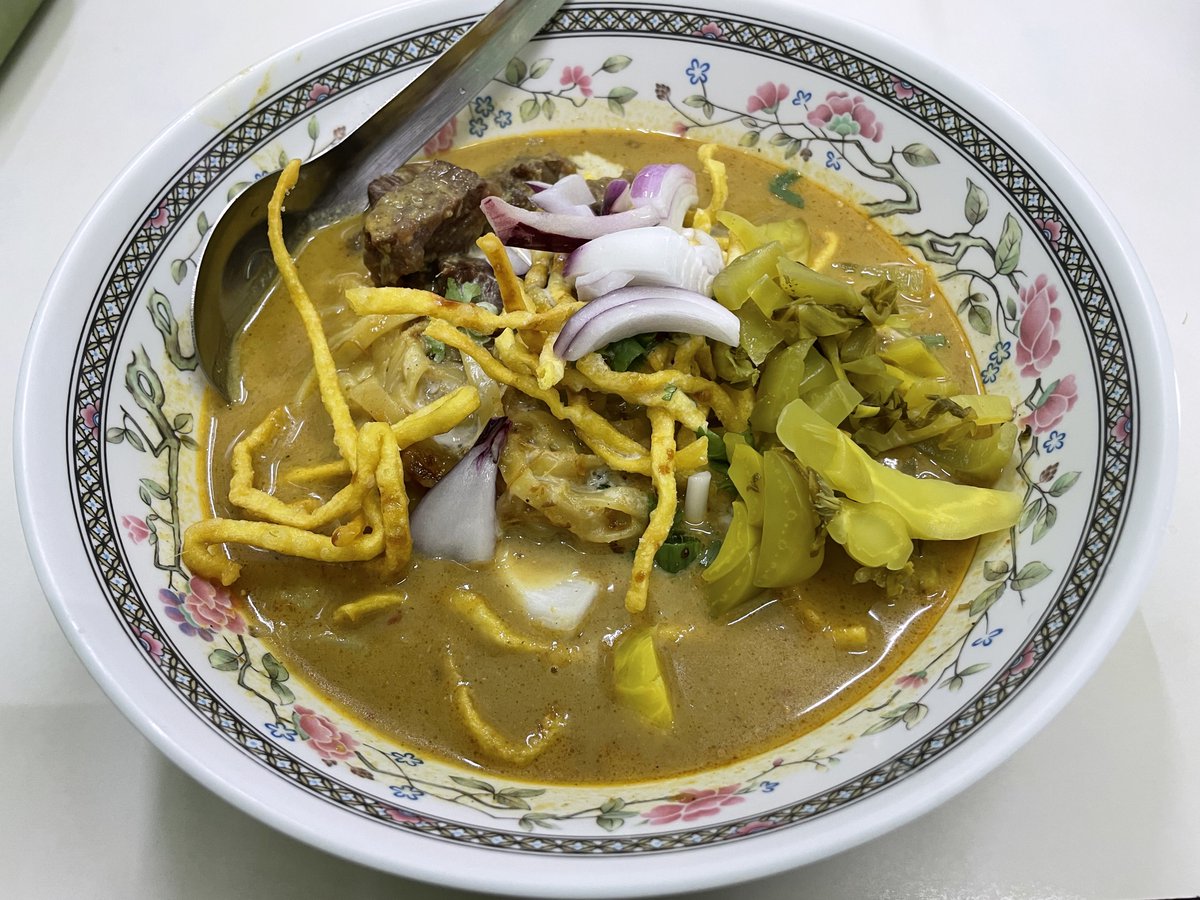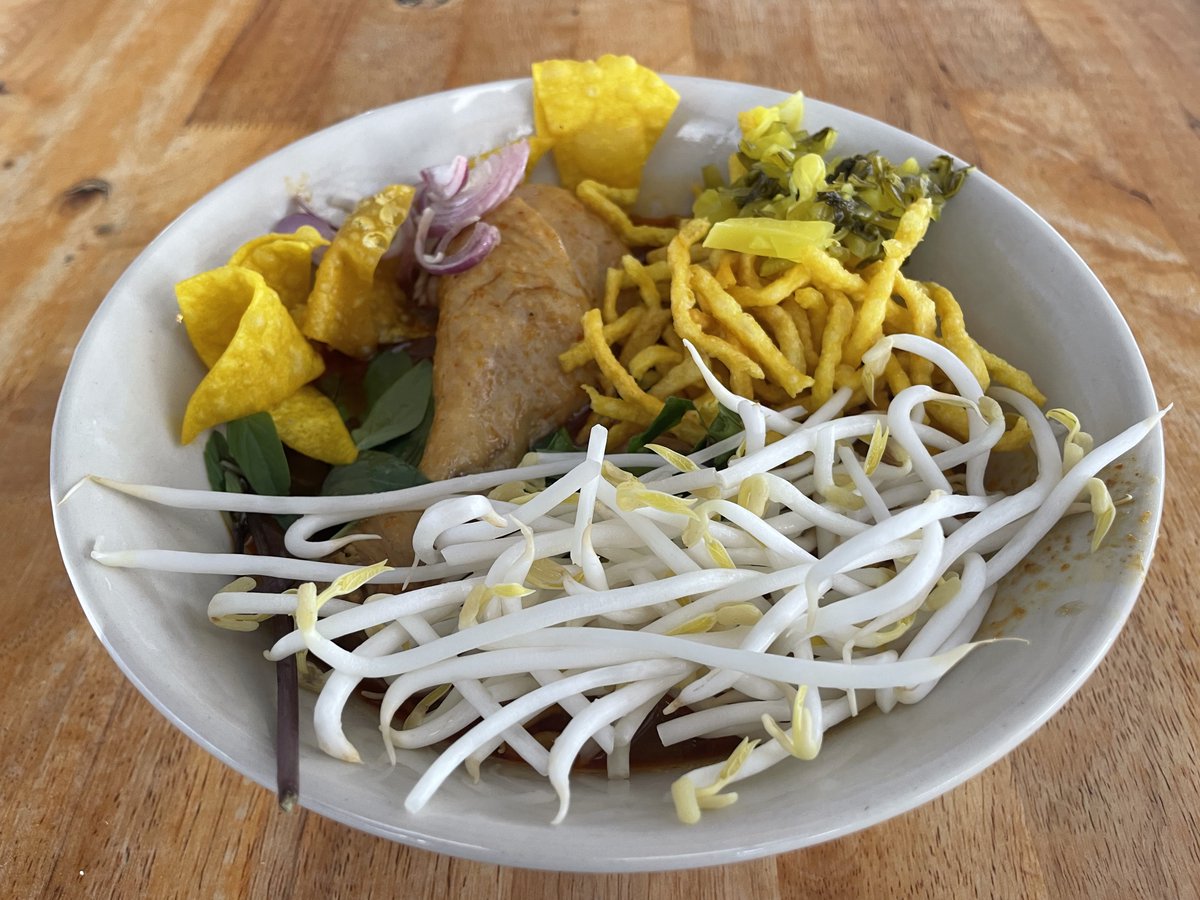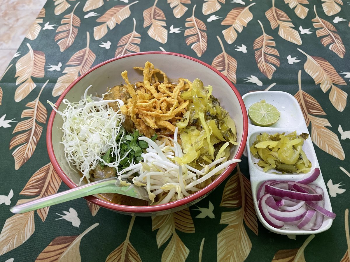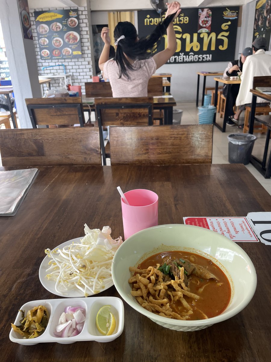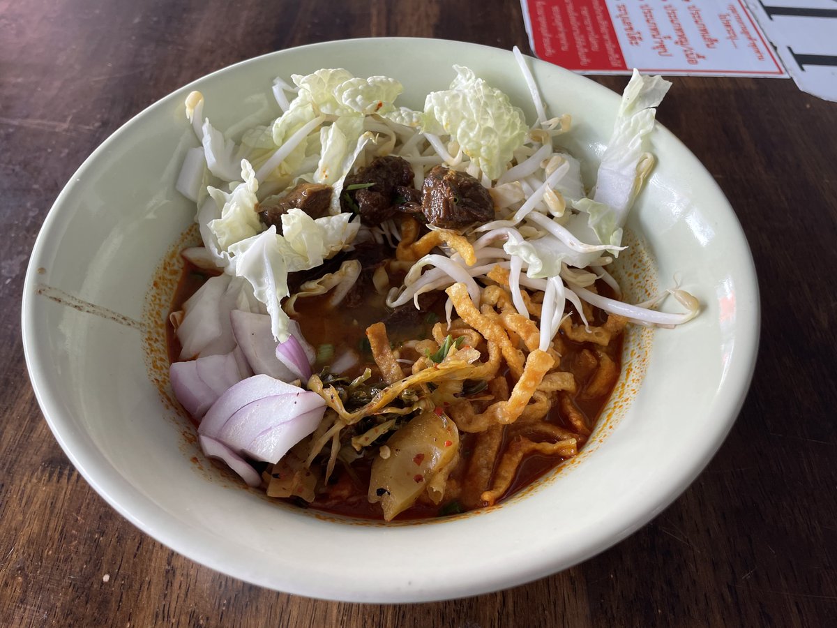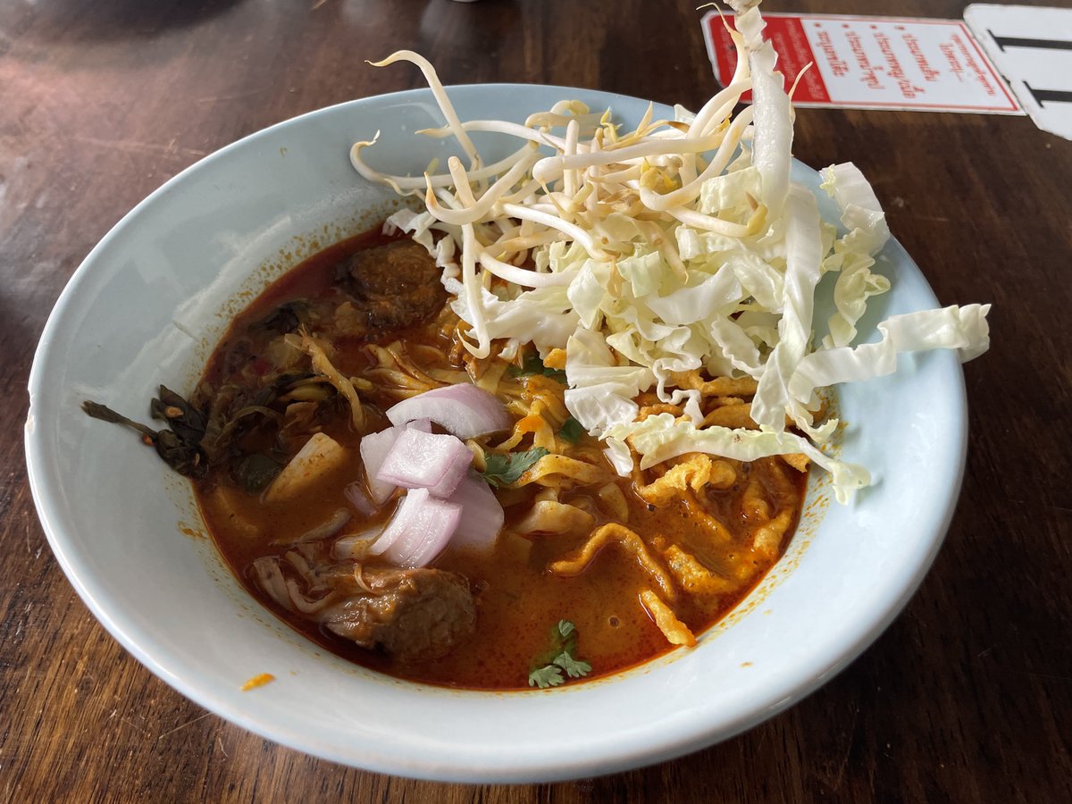 よもや昨日の夜もカオソーイ。友達と分けて食べたから全部じゃないけど一日ダブルカオソーイは初めてかも。日本でカオソーイ専門店できないかな、ワンコインぐらいで。円安でもはや日本と物価が変わらないと言われるチェンマイでも250円くらいなので。旨いのに~。
