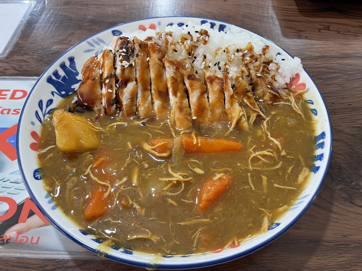 本日の昼食は日本風カツカレー。89バーツ(450円)。