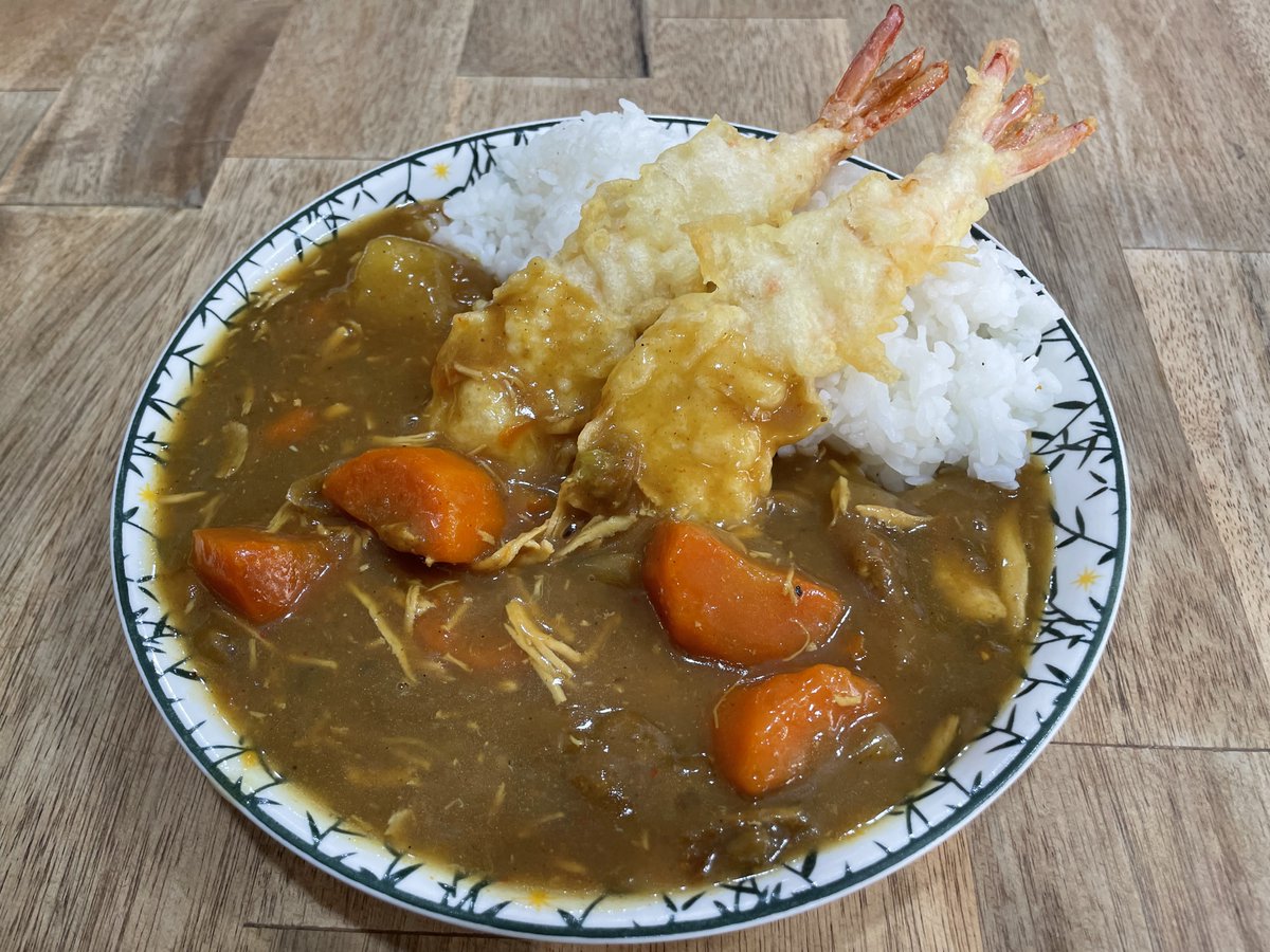 本日お昼はエビフリャーカレー。カオソーイはお休み。