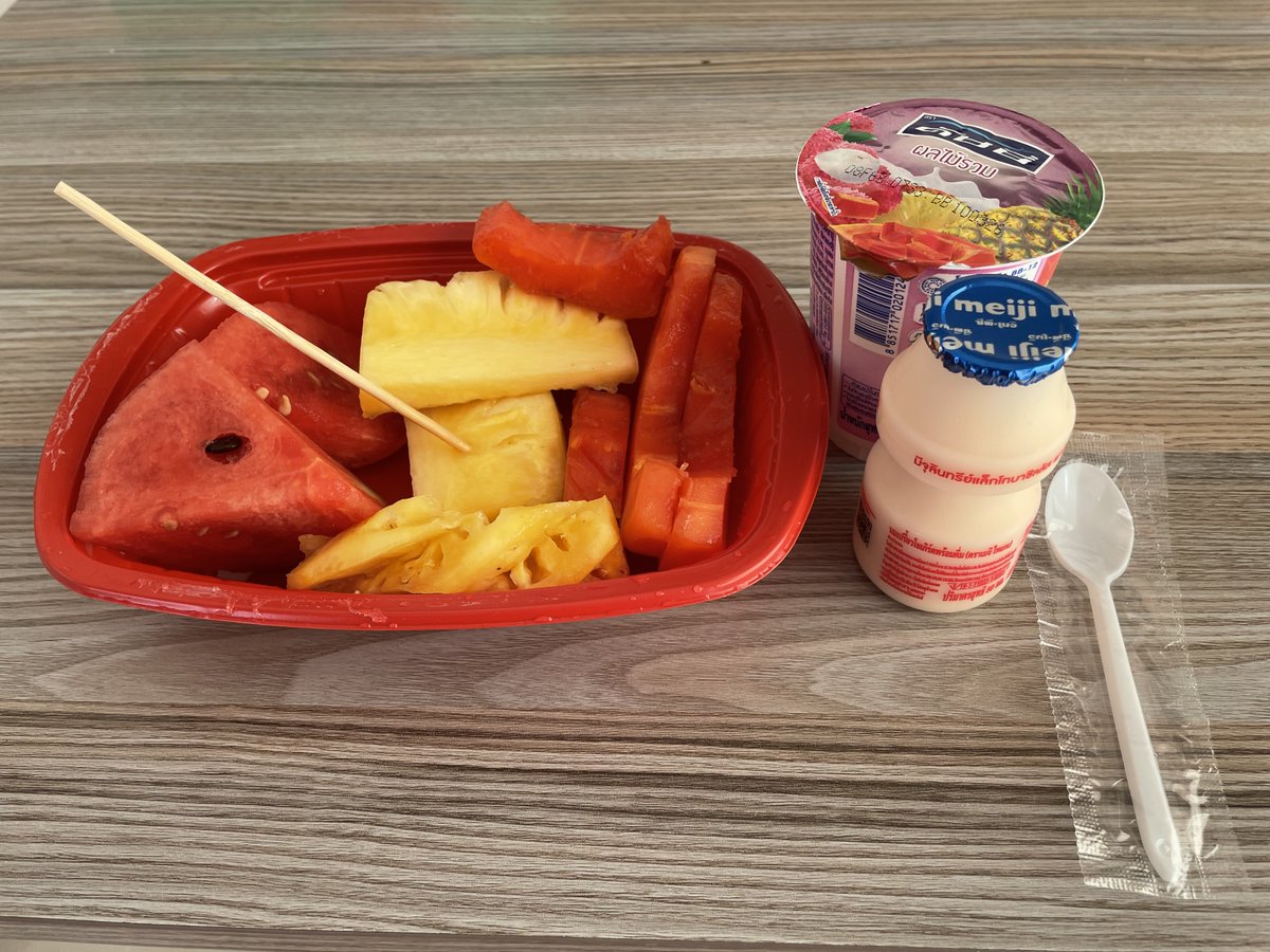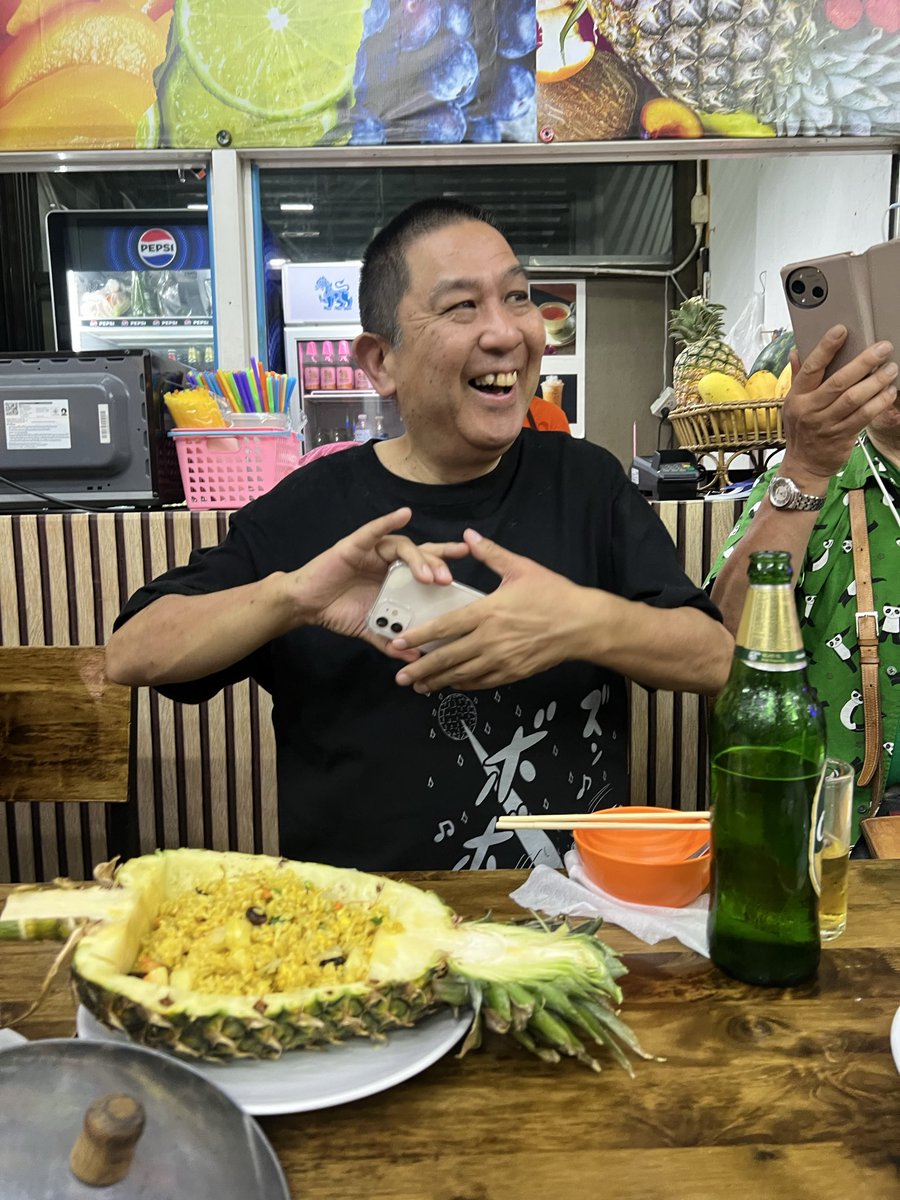 お昼は豚肉チャーハン。注文の時にタイ語で何か言われてよくわからずにOKOKと言ったら「半熟卵載せるか?」だった。トロリと美味かった。