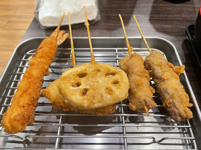 本日の晩飯。串カツと鮭丼セット。
