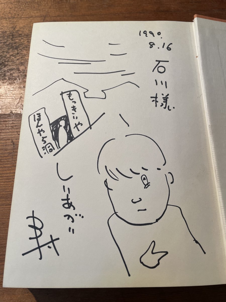 【僕のお宝】つげ義春先生の本に描いていただいた、しりあがり寿先生のつげ義春先生風サイン。36年前。
