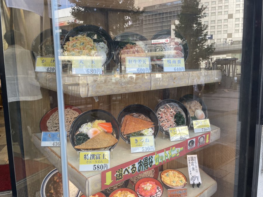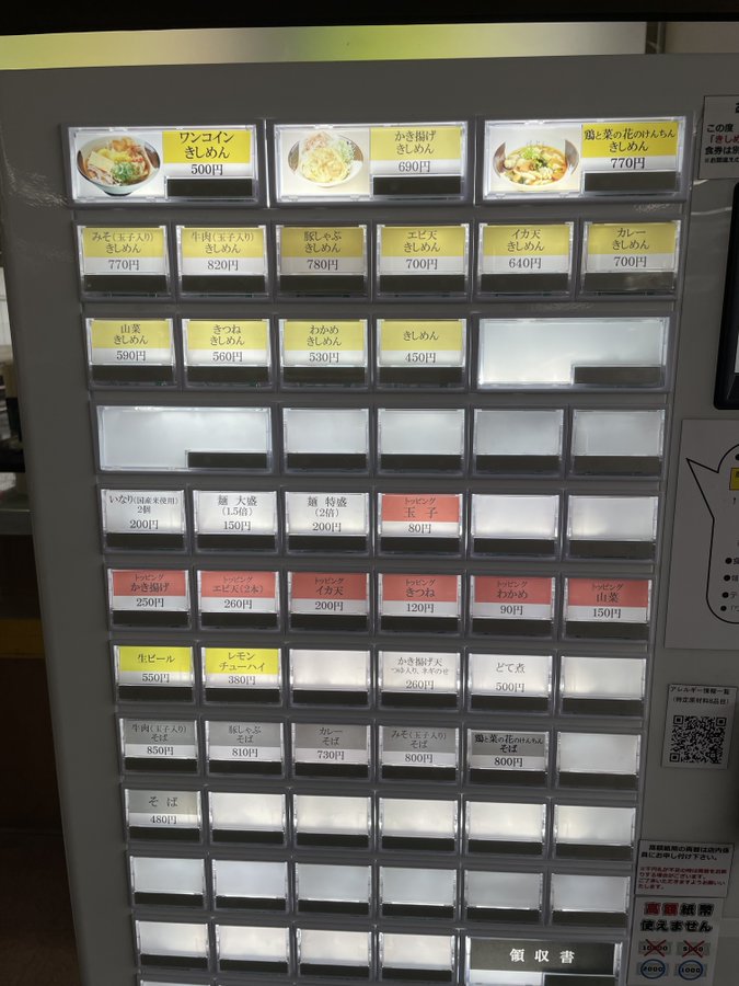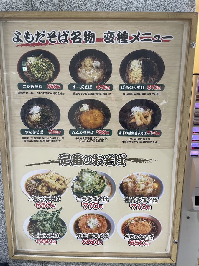 かつては新幹線ホームのきしめん屋にも蕎麦があったが、今は在来線のみ。それも券売機に一瞬見当たらなくて、無くなったと思ったらトッピングや飲み物のさらに下に息も絶え絶えに残っていた...。